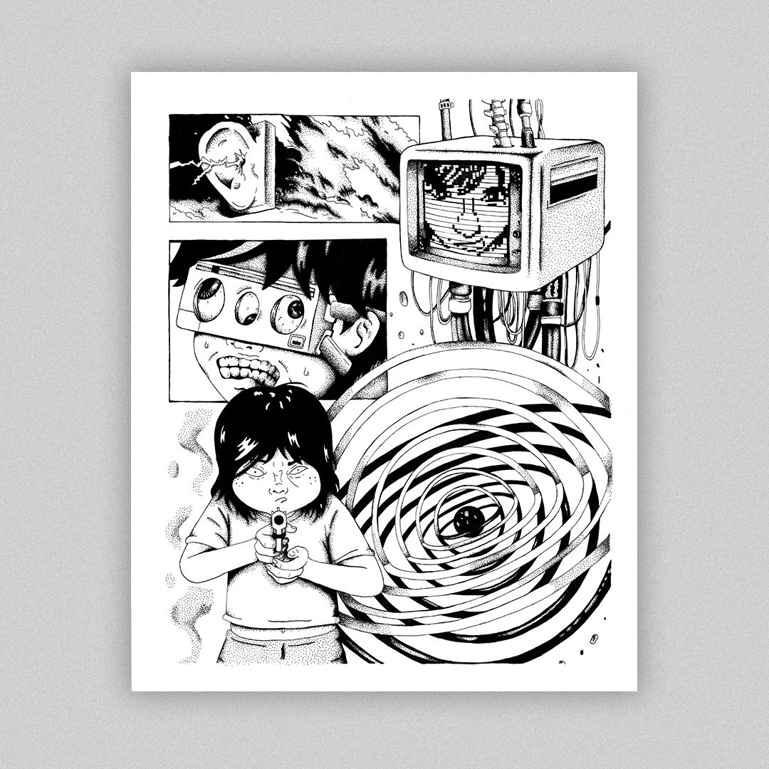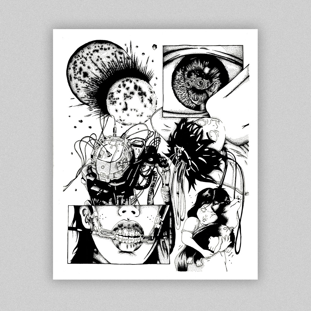 This is an Anthology that doesn't have a word, a collection of pictures that doesn't have a structure. Pushing the comic aesthetic with a story and symbols which cross over a lot. Continuity from the zine is only on the character. It's only from the mind that arranged in a picture.